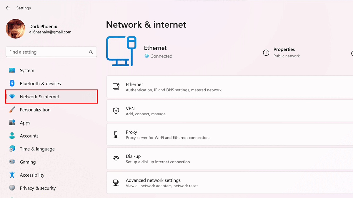 - 開きます設定アプリ> [オン]をクリックしますネットワークとインターネット。