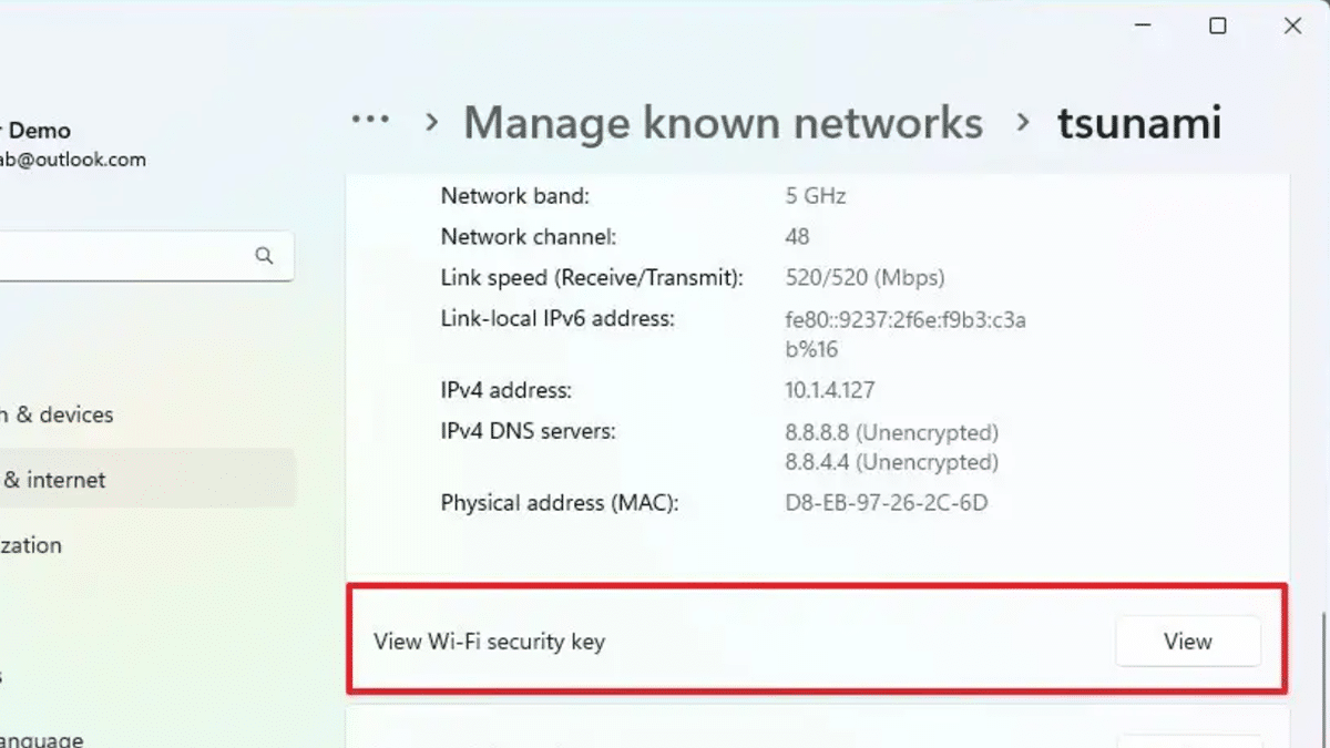 Dev ChannelのWindows 11 Build 23466から始めて、Microsoftは、設定アプリから直接保存されたWi-Fiパスワードを表示する新しいオプションを追加しています。新しい「Wi-Fiセキュリティキーを表示」オプションは、デバイスに保存されている特定のネットワークの[設定]ページで使用できます。