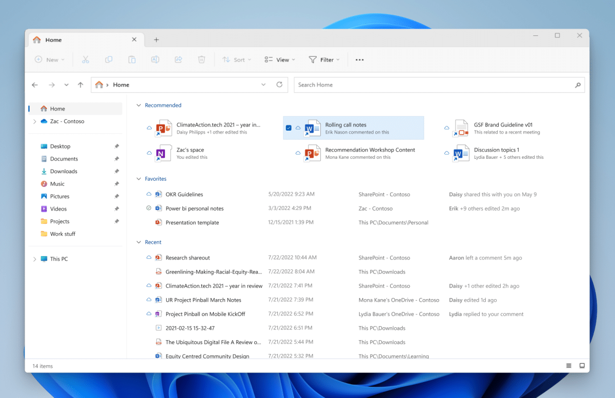 - ファイルの推奨事項は、ファイルエクスプローラーホームに来て、ユーザーに最も関連性の高いファイルコンテンツを指先に正しく提供します。