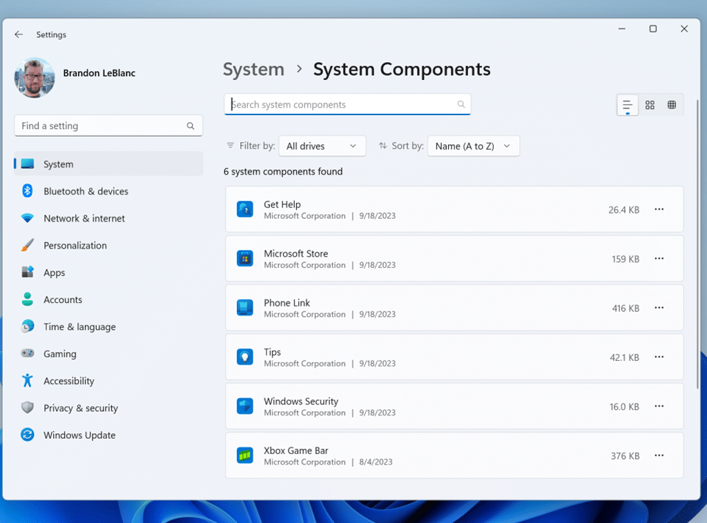 さらに、Windows 11 Build 25967は、新しい「システムコンポーネント」ページを設定アプリにもたらします。このページには、すべてのInboxアプリ、コーデック、プラグインが1つの場所にリストされているため、ユーザーがオペレーティングシステムにバンドルされたソフトウェアを簡単に管理できます。