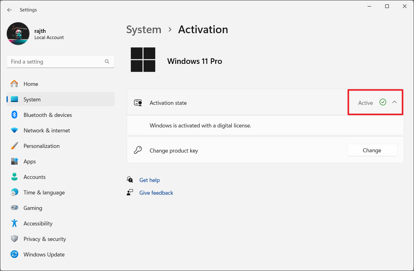2。トラブルシューティングが表示されない場合、Windows 11はすでにアクティブになっている可能性があります。その場合、プロダクトキーを再確認します。