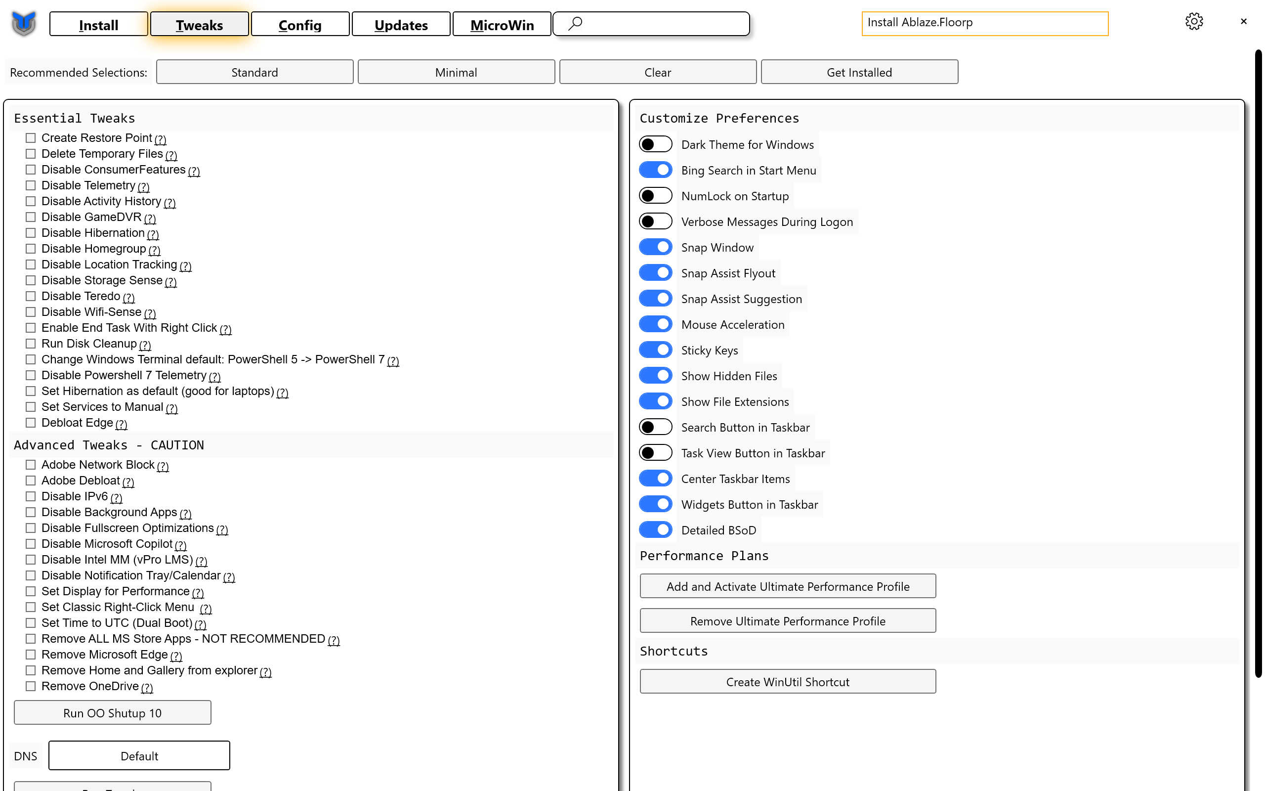 重要な調整は、主にWindows機能の無効化に関するものです。これには、他のいくつかの間のテレメトリ、アクティビティ履歴、またはwifiセンスが含まれます。それに加えて、それを使用してディスクのクリーンアップを実行したり、PowerShell 7テレメトリを無効にしたり、右クリック機能で最終タスクを有効にしたりすることもできます。