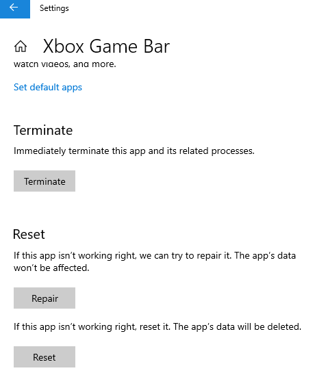 ステップ6:アプリの修理後に問題が続く場合、残された唯一のオプションはリセットボタンを押すことです。ただし、注意してください。これにより、すべてのXboxアプリの設定が削除されます。
