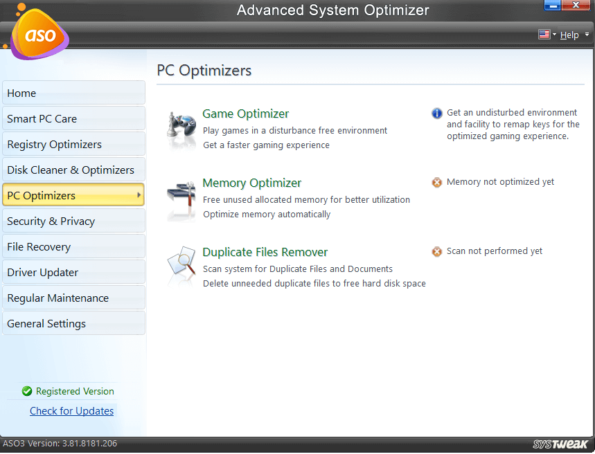 Advanced System Optimizerには、PCを維持するための多くのツールとセクションが含まれています。ドライバーを更新し、複製ファイルを識別および削除し、マイナーなレジストリエラーを修正し、未使用のファイルを見つけて削除できる多数のモジュールを備えています。ユーザーは、Advanced System Optimizerのゲームパフォーマンス機能の改善のおかげで、途切れないモードでゲームを開始できます。