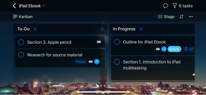 プロジェクトと現在の要件に応じて、Kanban、Gantt、Waterfall、Checklists、MindMaps、Tables、Calendarなどのさまざまなビューを簡単に切り替えることができます。どちらのビューを選択しても、セクション間でタスクをドラッグアンドドロップしたり、再配置したりできます。
