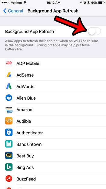- をオフにしますバックグラウンドアプリの更新画面の上部にあるオプション。