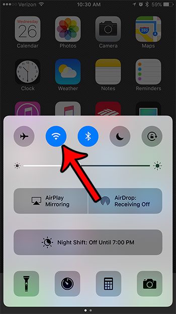 - タップしますWi-Fiオフまたはオンにするアイコン。
