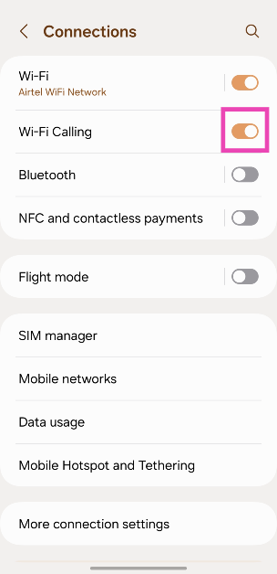 ステップ2:のトグルスイッチをオフにしますwifi呼び出し。