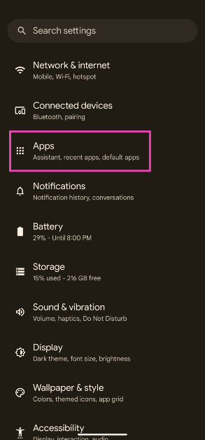 ステップ2:下にスクロールして選択しますアプリ。