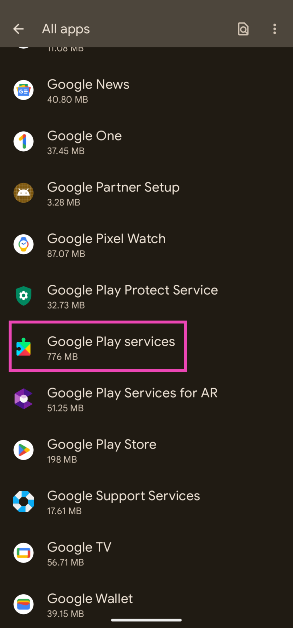 ステップ2:タップしますGoogle Playサービス。
