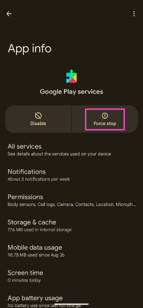 ステップ3:タップしますフォースストップ。