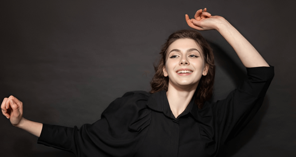このポーズは、女性の現代のプロのヘッドショット向けです。片手の指をもう片方の手のひらに置き、あごを傾けます。このポーズは、あなたが魅力的に見えるのに役立ち、俳優、モデル、ソーシャルメディアのインフルエンサーが他の人の注意を引くのに適しています。