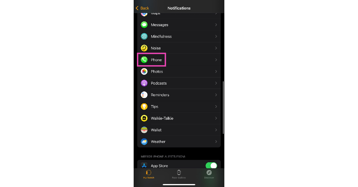 iPhoneの時計アプリに移動して、通知>電話「Haptics」の横にあるトグルスイッチをオンにします。