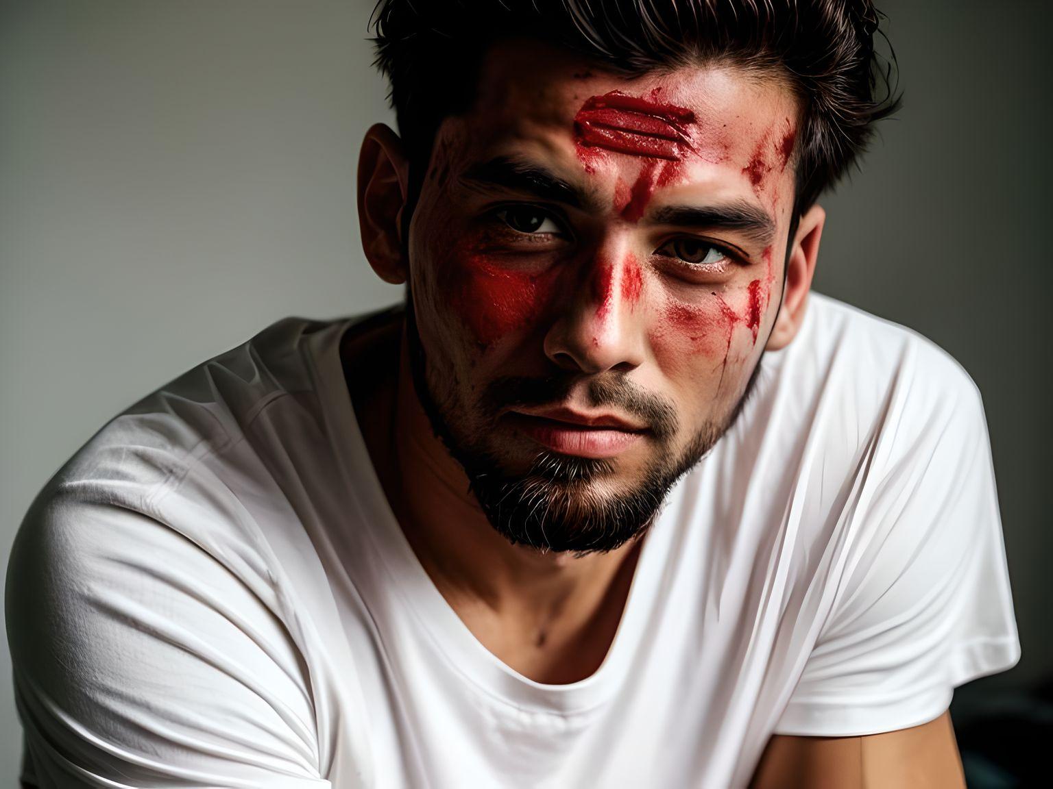 プロのゾンビメイクが必要な場合は、ここにあります。この男は彼の顔にたくさんの傷と傷を持っています。そして、彼らは本当に現実的であり、血です。この効果を達成するには、プロの特殊効果メイクアップアーティストが必要になる場合があります。本当に怖いです。