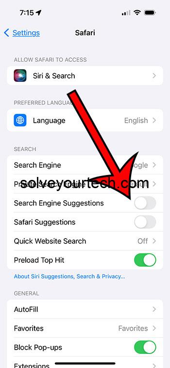 Safariの問題がまだ発生している場合は、設定アプリでSafariの提案などの機能を無効にしてみてください。これは、閲覧やロードコンテンツに関連する問題を解決するのに役立つ場合があります。