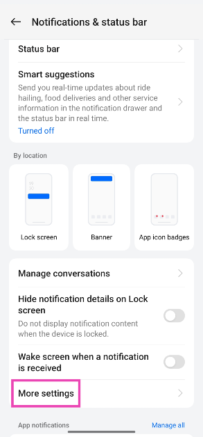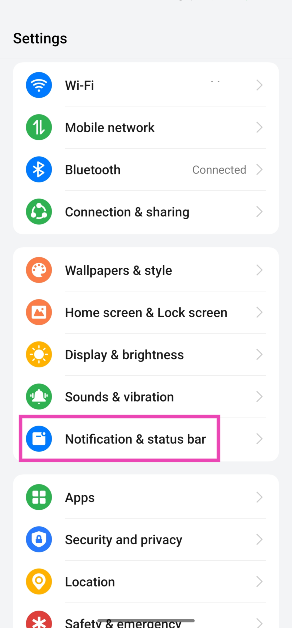 ステップ1:行きます設定選択します通知とステータスバー。