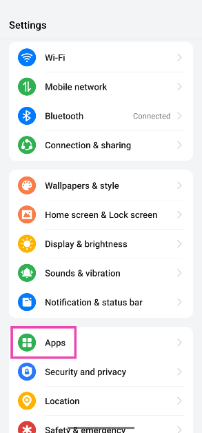ステップ1:行きます設定選択しますアプリ。