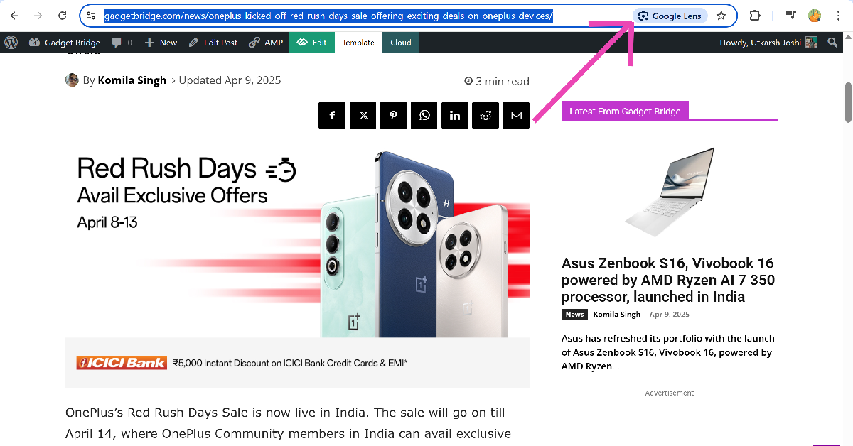 ステップ2:クリックしますアドレスバーGoogleレンズを選択します。