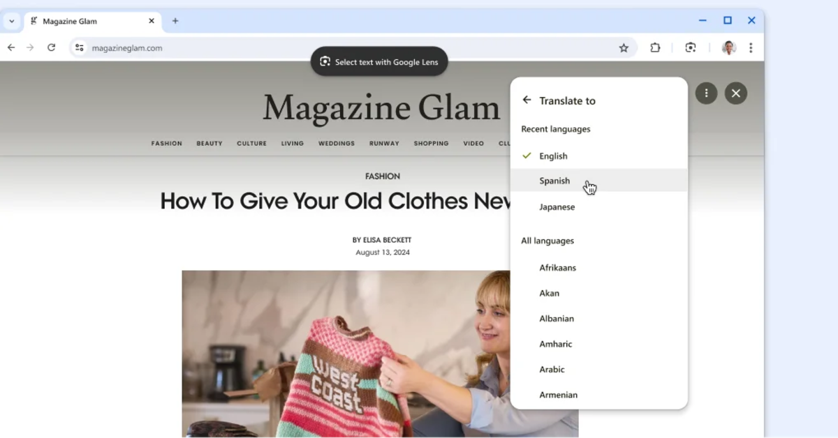 テキストを読む機能により、Googleレンズは優れた翻訳ツールになります。 Webページに段落を翻訳する場合は、レンズを使用してそうすることができます。利点は、Chrome用のGoogle Translateプラグインとは異なり、Googleレンズがページ全体を翻訳していないことです。これは、好きなものをスポット翻訳できることを意味します。さらに、選択したテキストを画像としてクリップボードにコピーできます。