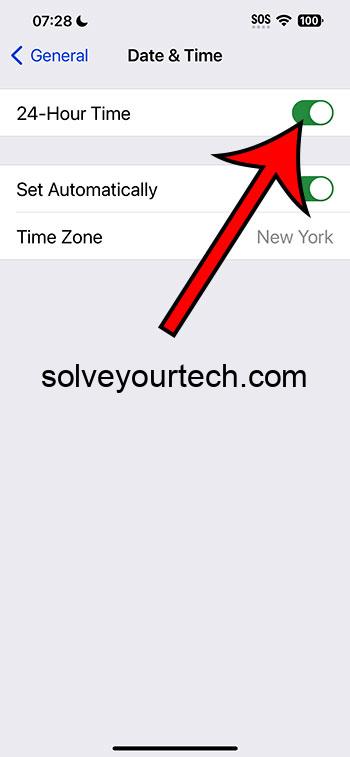 このアクションを完了した後、iPhoneの時間形式は12時間のクロックから24時間のクロックに変更されます。これは、午後2時を見る代わりに、14:00が表示されることを意味します。この形式は、世界の多くの地域で一般的であり、より正確な時間維持システムを好む人や、24時間のクロックが標準である専門的な設定に特に役立ちます。