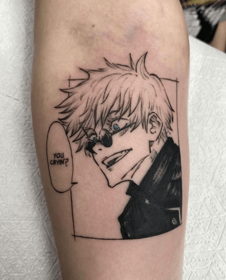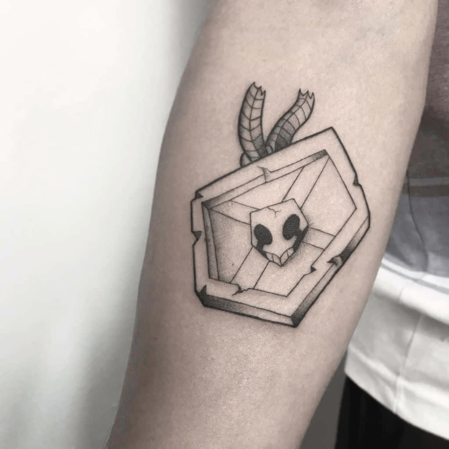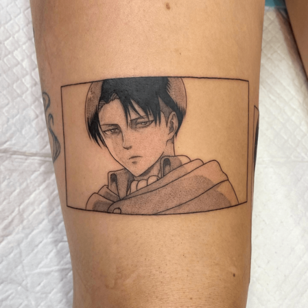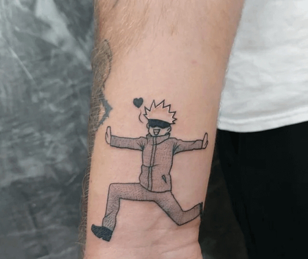 より単純なタトゥースタイルを好む人にとって、ミニマリストのアプローチは素晴らしい選択です。このアニメにインスパイアされた作品は、さまざまなサイズで作られ、基本的な形状と限られたシェーディングでシンプルさに焦点を当て、きれいな外観のために細かい詳細を省略します。