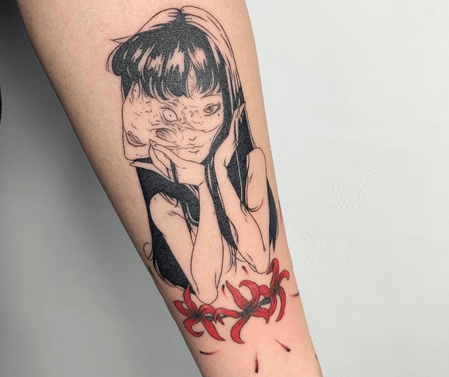 この印象的なケン・カネキ・タトゥーは、彼の折りたたみ後の変容を描いており、東京グールのファンの目を引くことは間違いありません。カネキの幽霊のような白い髪から黒くなった爪まで、細かく細かくレンダリングされています。肩甲骨に位置するこのタトゥーは、カネキの本質を捉え、彼がナックルを割っている感覚を呼び起こします。