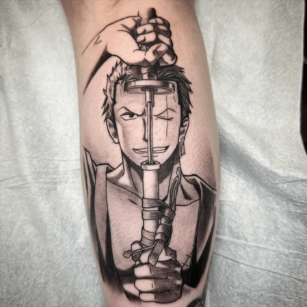 海賊ハンターと呼ばれるロロノア・ゾロは、ワンピースのフランチャイズの愛されているキャラクターです。彼の強さ、知性、戦術的な腕前で有名なゾロの筋肉質の体格と活気のある緑色の髪は、特に色付きのインクでレンダリングされた場合、彼をタトゥーの目を引く選択肢にします。