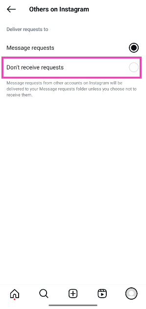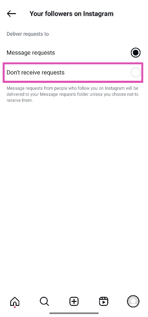 ステップ6:フォロワーからのメッセージを完全にブロックする場合は、選択してくださいリクエストを受け取らないでください。それ以外の場合は、選択しますメッセージリクエスト。