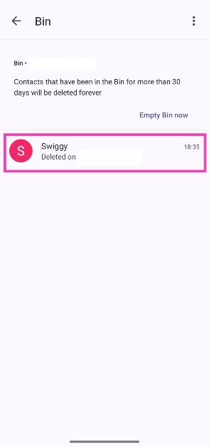 一方、Android OEMのスタンドアロンの連絡先アプリには、デバイスの連絡先用の専用のリサイクルビンがあります。 Samsungスマートフォンを使用している場合、復元目的で連絡先をバックアップする必要はありません。削除されたすべての連絡先は、永久に削除される前に30日間リサイクルビンに移動します。