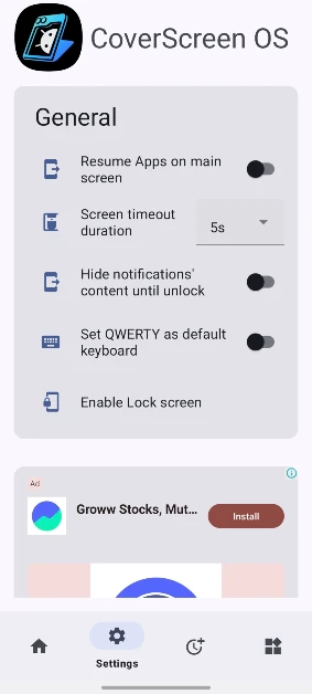 MultiStarに感銘を受けた場合は、いつでもCoverscreen OSをチェックアウトできます。このサードパーティアプリを使用すると、シンプルなスワイプアップジェスチャーでカバー画面のアプリドロワーにアクセスできます。 ui osの審美性を再現しませんが、実際のアプリドロワーにはるかに近いです。プレミアムサブスクリプションを購入すると、より多くの機能のロックを解除して、カバー画面の可能性を最大化できます。