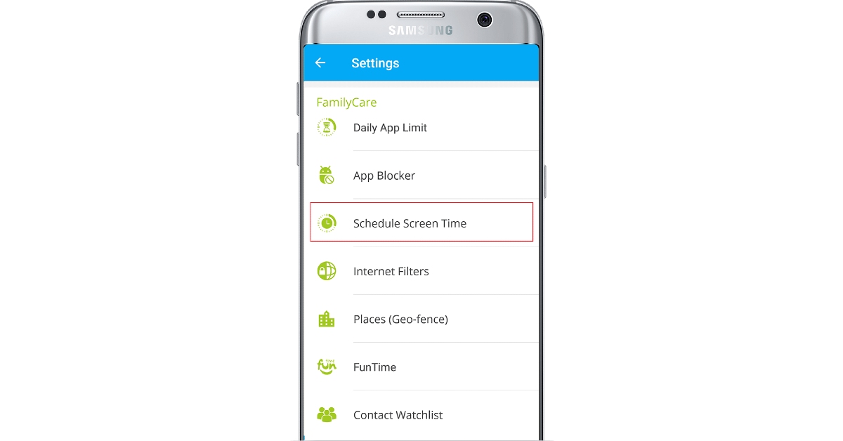 ステップ3:FamilyCareセクションで「画面時間のスケジュール」を選択します。
