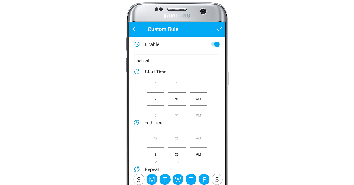ステップ6:スケジュールのトグルスイッチをオンにします。ファミリータイムアプリは、スケジュールが始まるとデバイスをロックします。