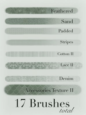 なんと17のテクスチャから選択できるので、このブラシセットで使用できるものを間違いなく見つけることができます。デニムブラシを使用して、ポートレートに衣類とジャケットにテクスチャを追加するのが大好きです。