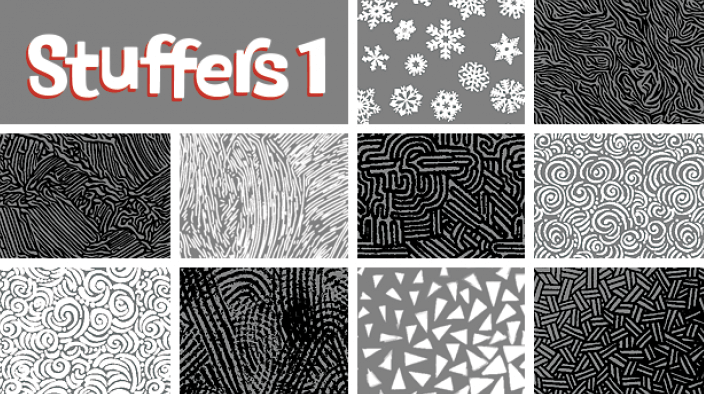 このブラシセットは、10種類のテクスチャブラシを提供します。私はスパイラルブラシを使用して、シェルの外側にテクスチャを追加し、漫画スタイルの降雪にスノーフレークブラシを追加するのが好きです。