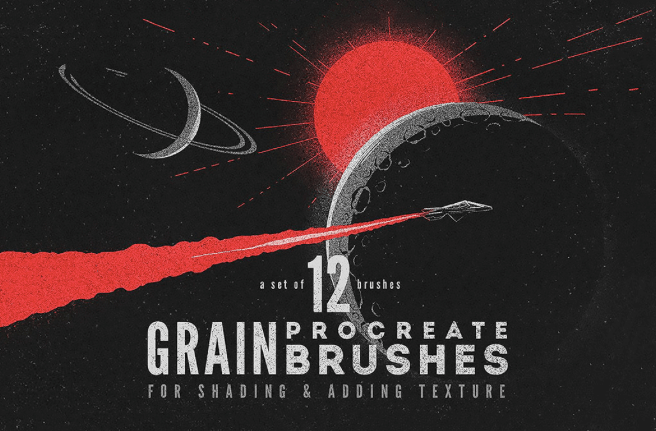 このブラシセットには、12個のテクスチャブラシが付属しています。私はしばしば、基本的な穀物ブラシを使用して、図面に古い紙のテクスチャーの錯覚を作り出します。
