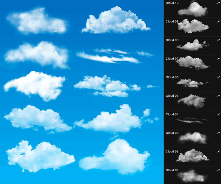 これらの10のブラシが大好きです。数秒で、Pro Procreate Cloud Brushを完成させるために何時間も費やすことなく、見事で現実的な曇り空を作成できるからです。彼らは非常に多様性を提供し、風景に最適です。