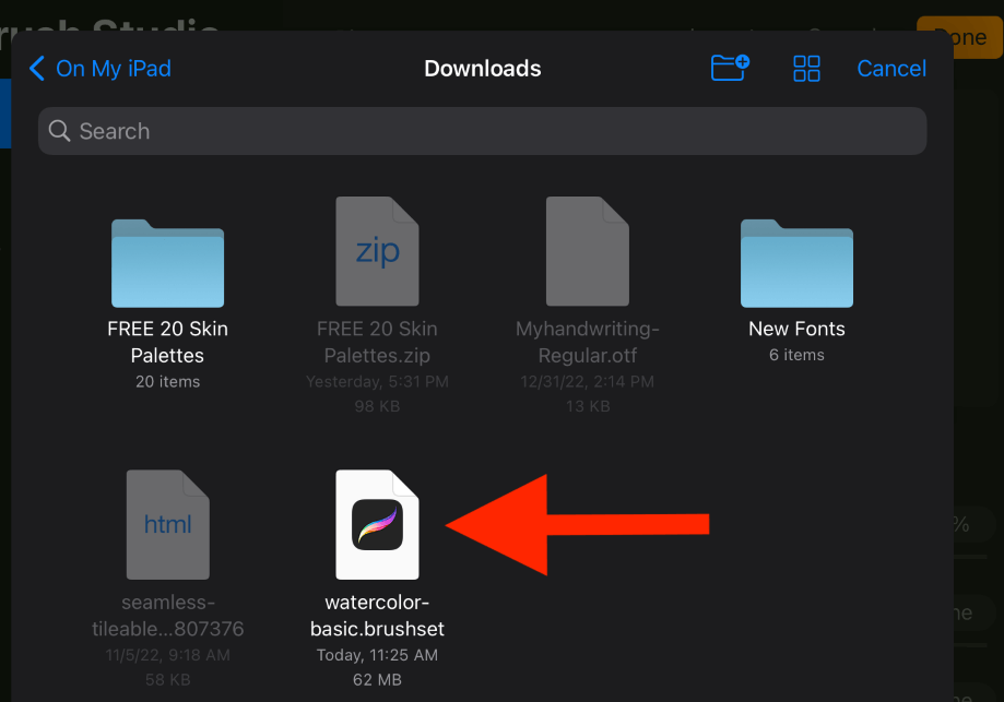 ステップ3:デバイスファイルから、新しいブラシセットファイル名をタップして、インポートするのを待ちます。これには数秒しかかかりません。