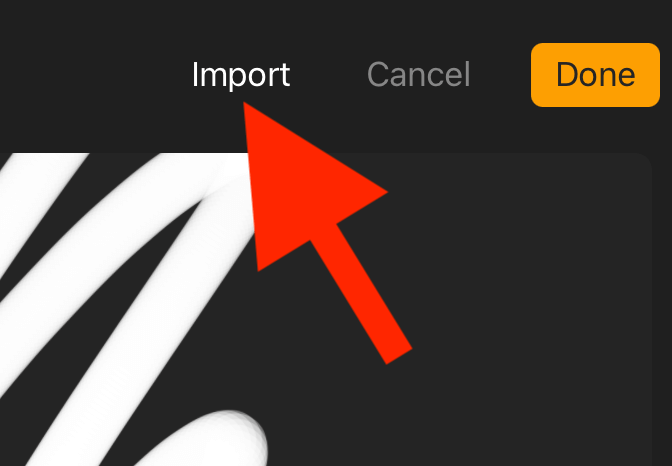 ステップ2:ブラシ編集ウィンドウが表示されます。メニューの一番上のバナーで、タップします輸入。