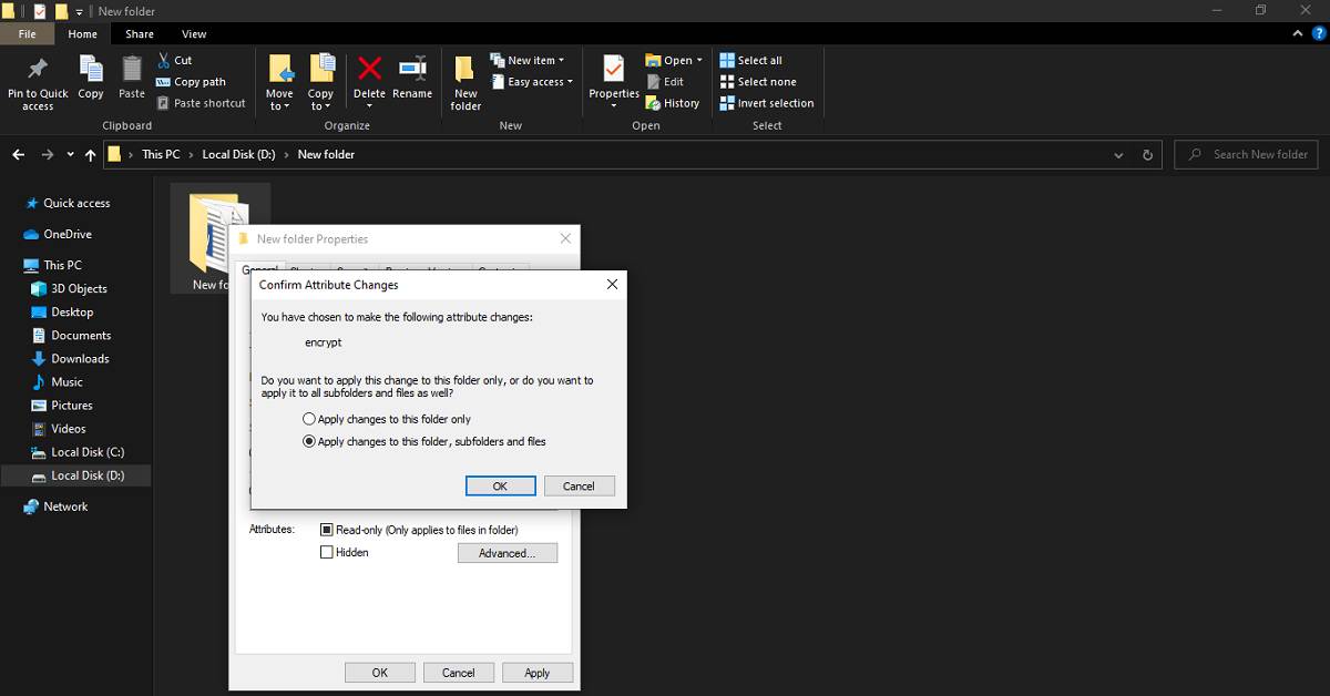 ステップ7:[OK]をクリックして、パスワードで保護されたフォルダーを作成します。
