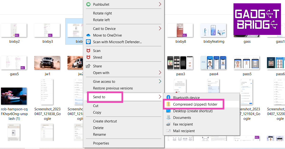 ステップ2:「zipフォルダー(圧縮)」を選択します。