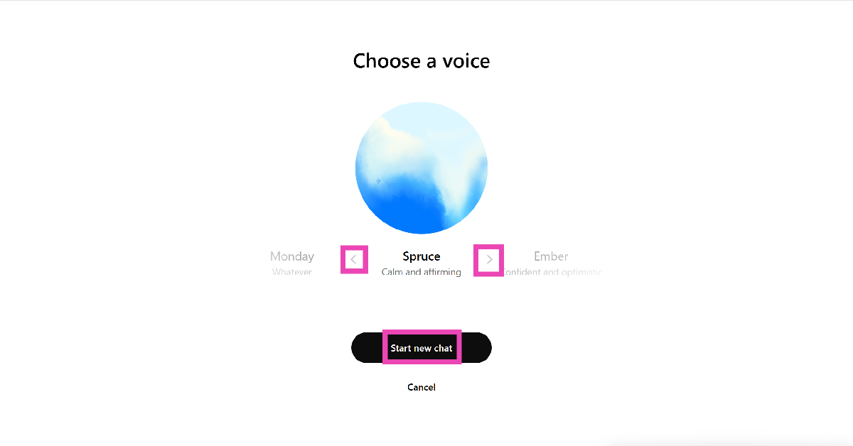 ステップ4:を使用します矢印アイコン声を閲覧してクリックします新しいチャットを開始します1つを選択します。