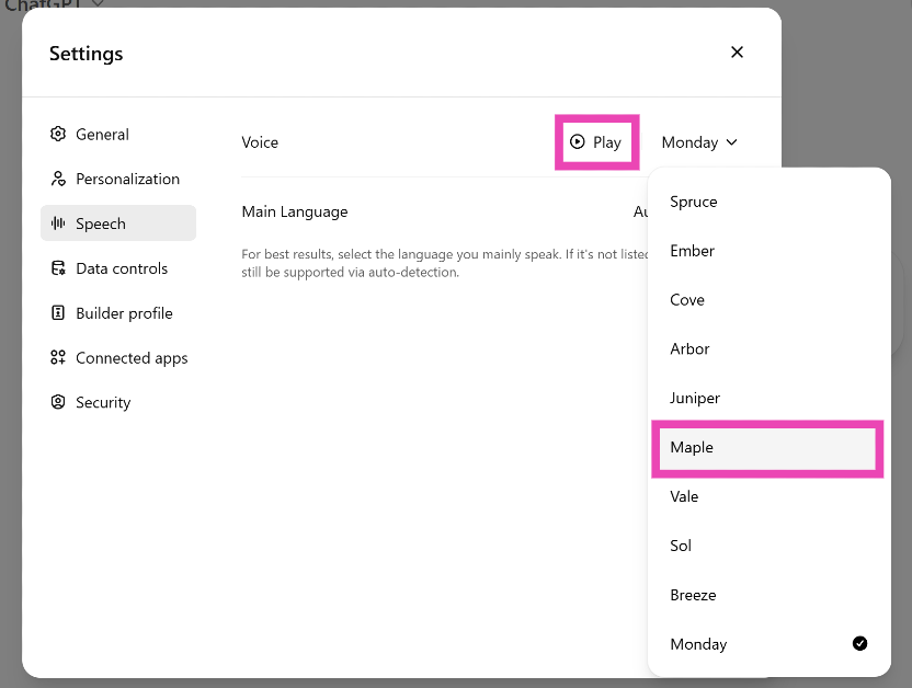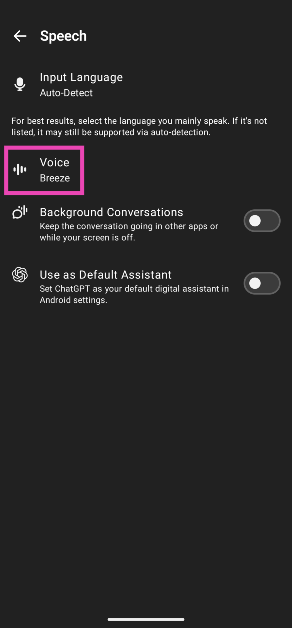 アプリの設定からChatGptの音声を変更する方法はありますか?