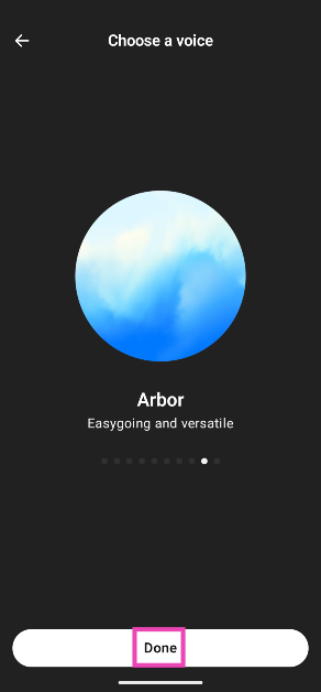 ChatGPTアプリに移動し、波形アイコンをタップし、フィルターアイコンを押して、好きなものに着地するまで声をスワイプします。 「新しいチャットの開始」をタップして選択します。