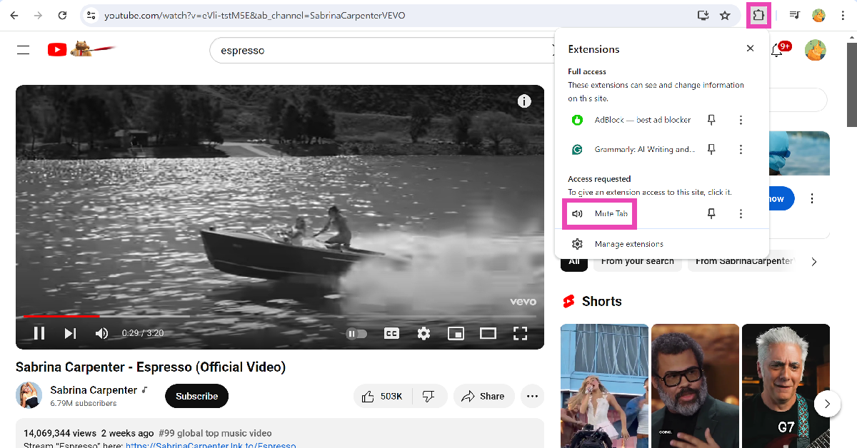 ステップ4:をクリックしますミュートタブ拡張機能。