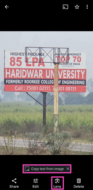 GoogleフォトとGoogleレンズアプリは、携帯電話のギャラリーの任意の画像からテキストを抽出できます。画像の下のレンズアイコンを押して、テキストをコピーします。
