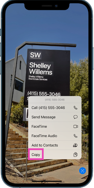 ステップ2:画像からテキストをコピーします画面の下部にオプションがポップアップする必要があります。タップしますその上。