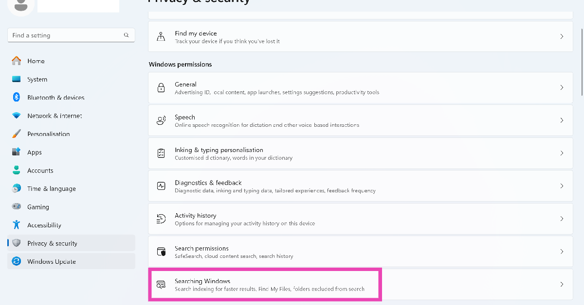 ステップ3:下にスクロールしてダブルクリックしますWindows検索。