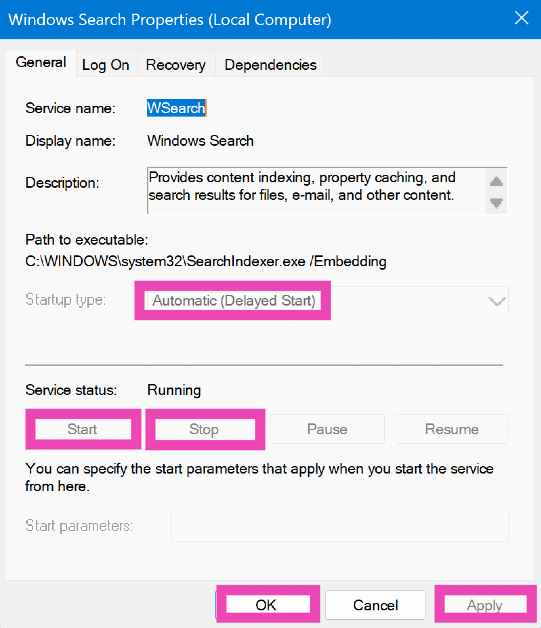 Windows検索サービスを停止して、もう一度起動します。さらに、ファイルエクスプローラーとタスクマネージャーの検索タスクを再起動します。