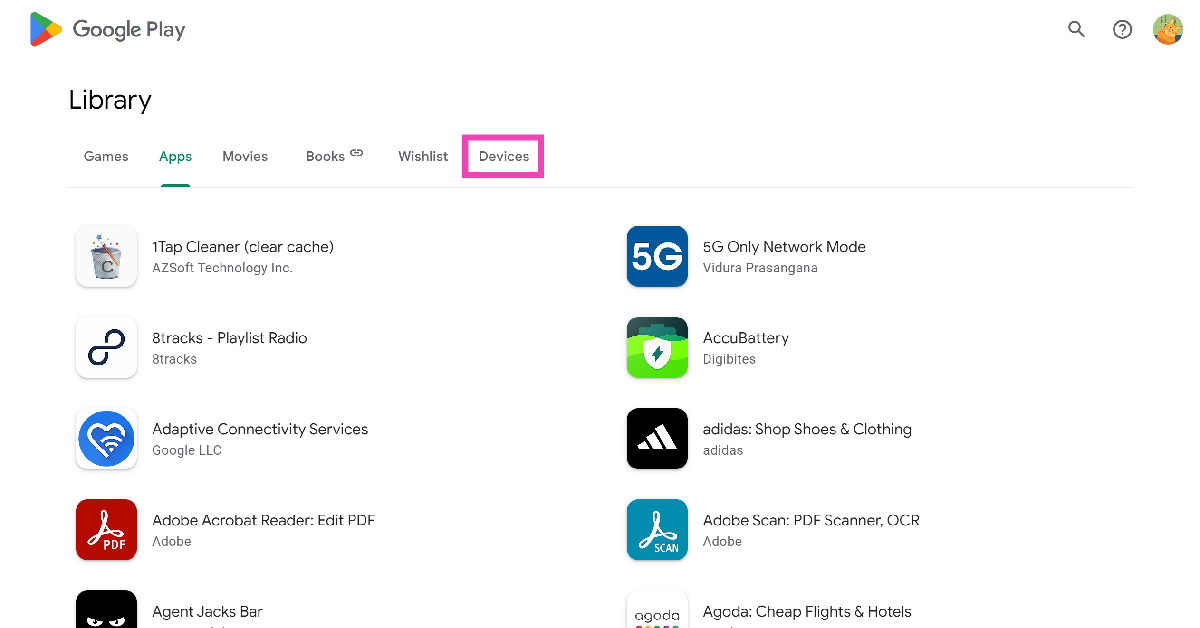 ステップ2:クリックしてくださいプロフィール写真画面の右上隅で選択しますライブラリとデバイス。