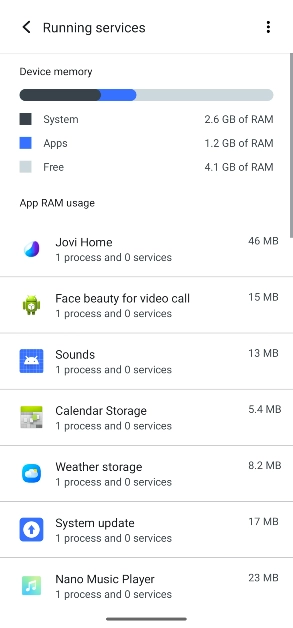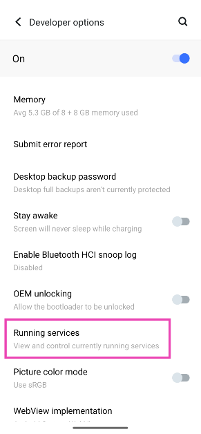 携帯電話のビルド番号を7回タップして、開発者モードを入力します。次に、に行きます開発者オプション>ランニングサービス現在、どのアプリがデバイスでRAMを利用しているかを表示します。